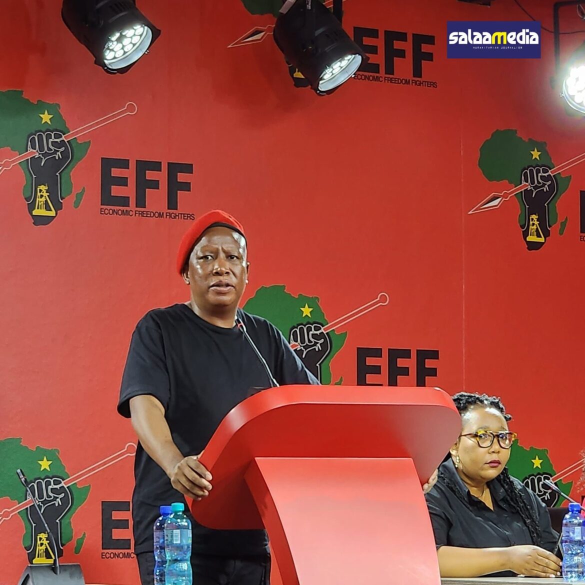 Johannesburg – Economic Freedom Fighters leader, Julius Malema addressed the media on Wednesday ahead of the party’s impending nationwide shutdown. Malema started the briefing by reiterating the objective of the national shutdown is to call for the “resignation of the president, the demand to end loadshedding and bring to light the issues that affect young people”.
