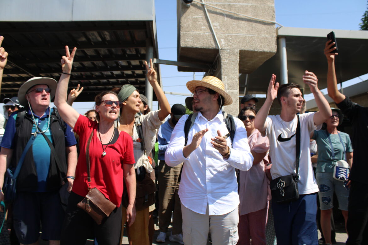 Over 1,500 people stood in the scorching sun, chanting liberation slogans and vowing to remain at the site as they negotiated entry to Al Arish, and until all passports had been returned.