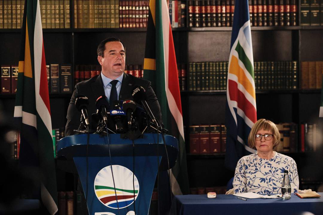 Image: DA leader John Steenhuisen and federal council chairperson Helen Zille at a media briefing in Cape Town, where the DA announced it would not participate in the National Dialogue. [News24]